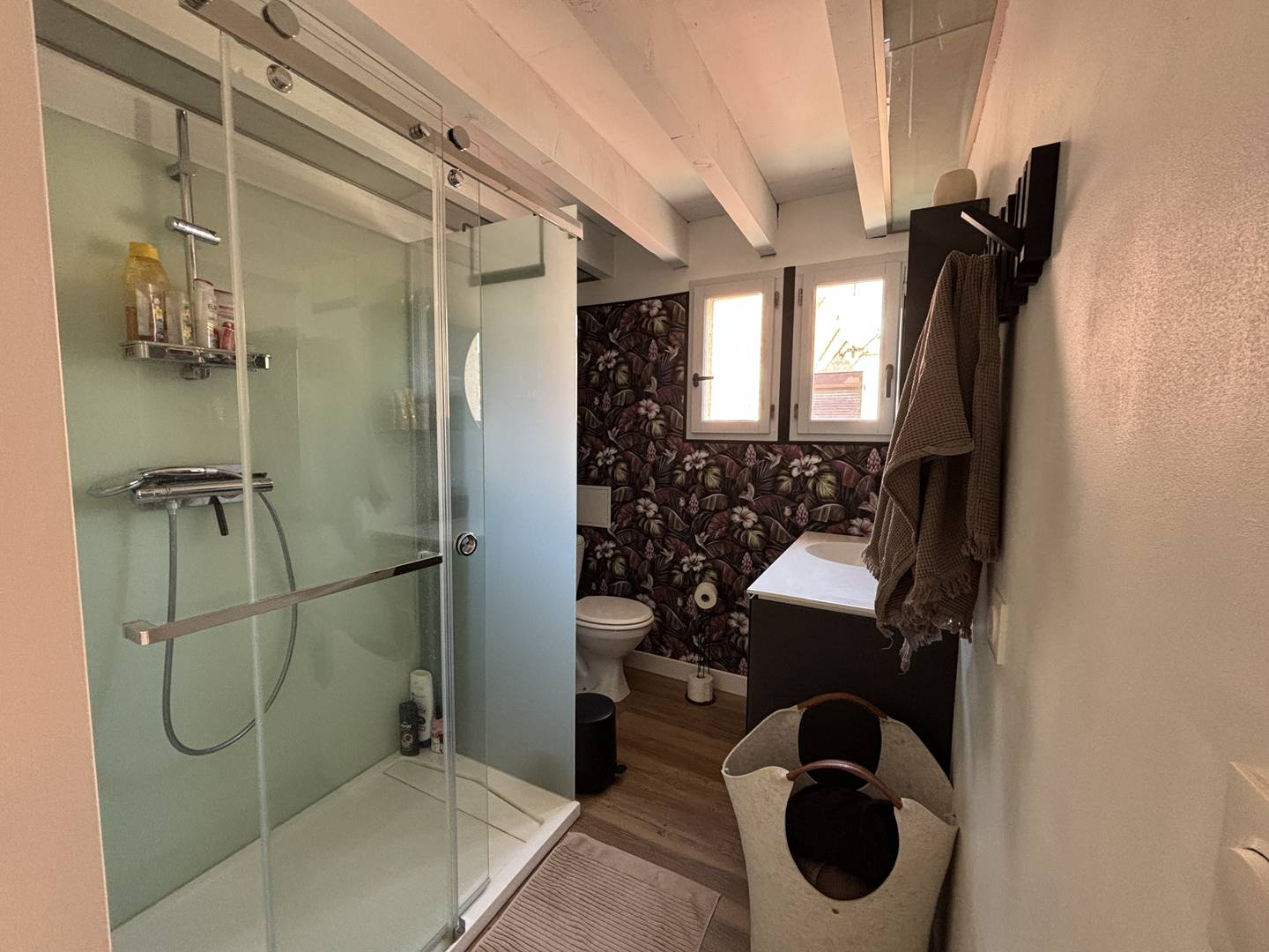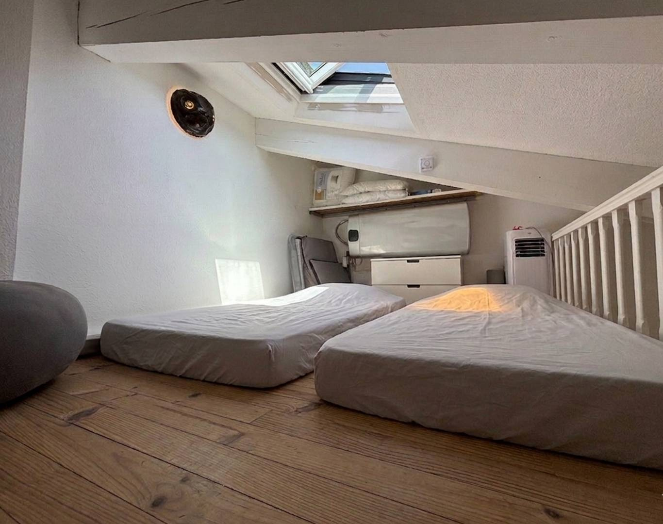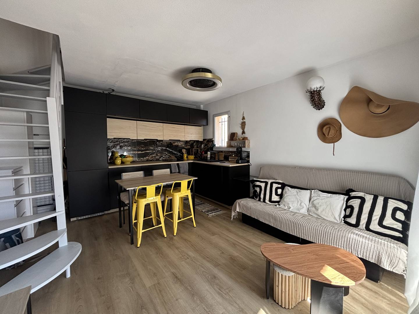 Maison de type 2 pièces d'environ 33m², aménagement agréable : Terrasse équipée, Salon avec canapé lit (couchage clic clac 2 personnes), TV. Cuisine ouverte (frigo congélateur, lave-vaisselle, lave linge, micro onde). A l'étage, une chambre climatisée avec lit double (couchage 2 personnes), accès à la rochelle (mezzanine basse) avec velux, climatisation mobile et 2 matelas en 80 (couchage d'appoint). Une salle d'eau avec WC. Equipée pour 4 personnes. Linge de maison et draps non fournis. Ménage de fin de séjour non inclus, prestation en supplément).