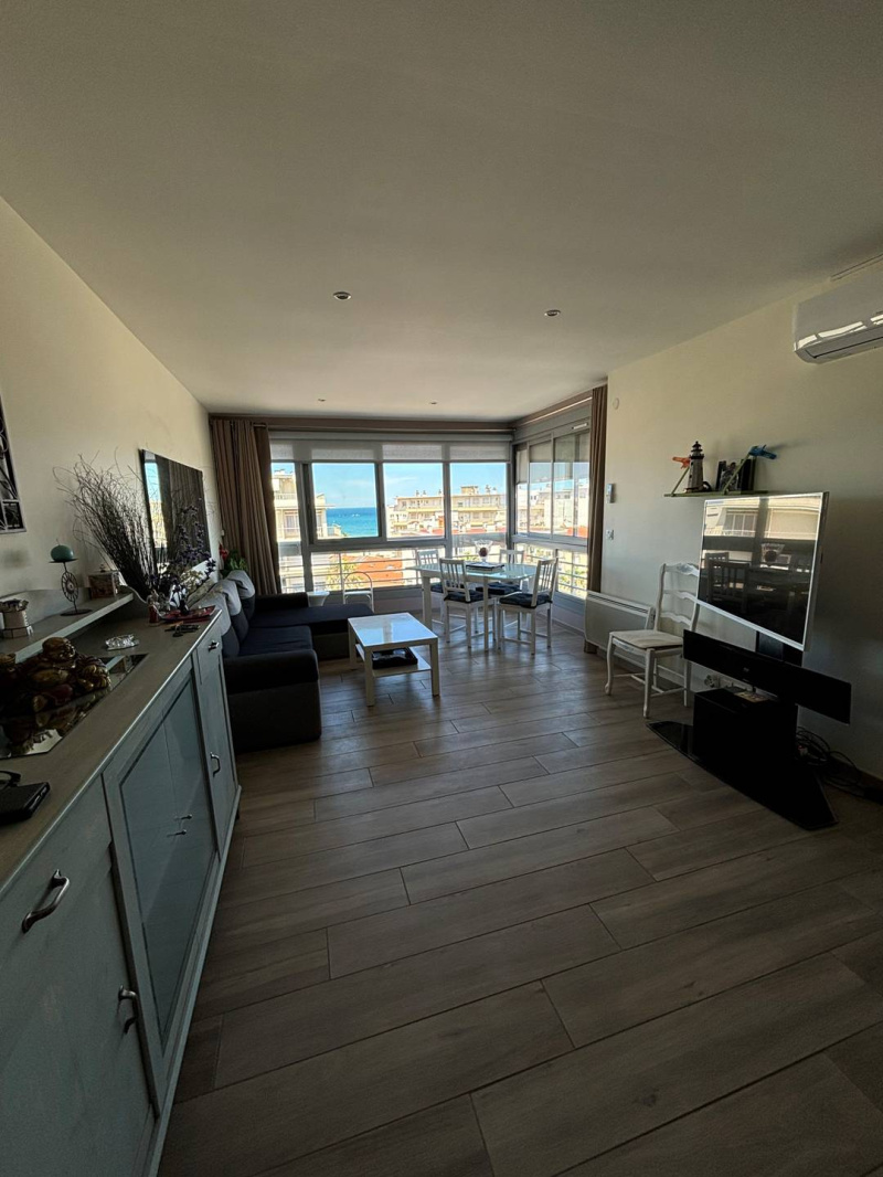 Cet appartement est situé au 6ème étage d'une résidence en bord de mer et proche des commodités. L'appartement T2 en duplex très moderne dispose d'une surface totale de 56m². Il se compose d'un séjour avec TV, canapé convertible (140cm), une table à manger avec 4 chaises. Cuisine ouverte totalement équipée, micro-onde, 1 plaque de cuissons, frigo, lave-linge, lave-vaisselle et nécessaire vaisselles. Une première salle d'eau avec WC au RDC. Une chambre parentale avec lit double + placards et une salle d'eau avec douche et WC. Doubles vitrages, volets roulants. 1 place de parking privative en parking souterrain. Appartement totalement climatisé. Equipé pour 4 personnes.