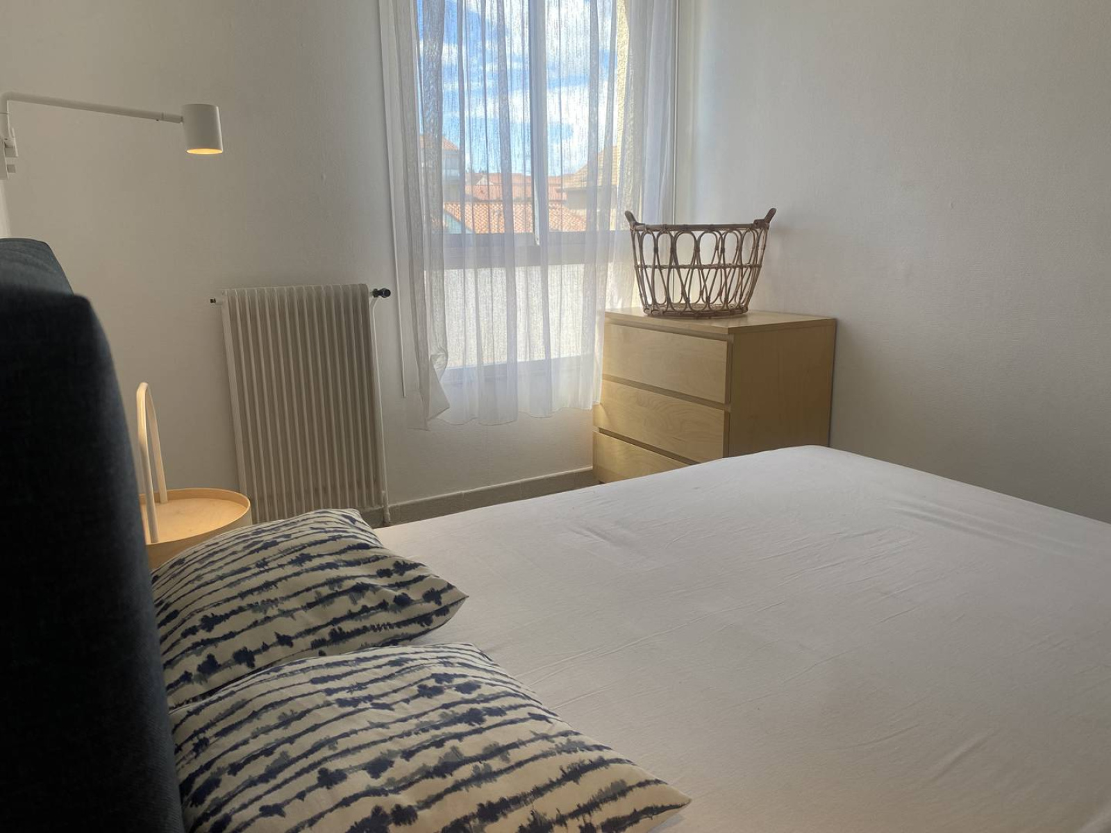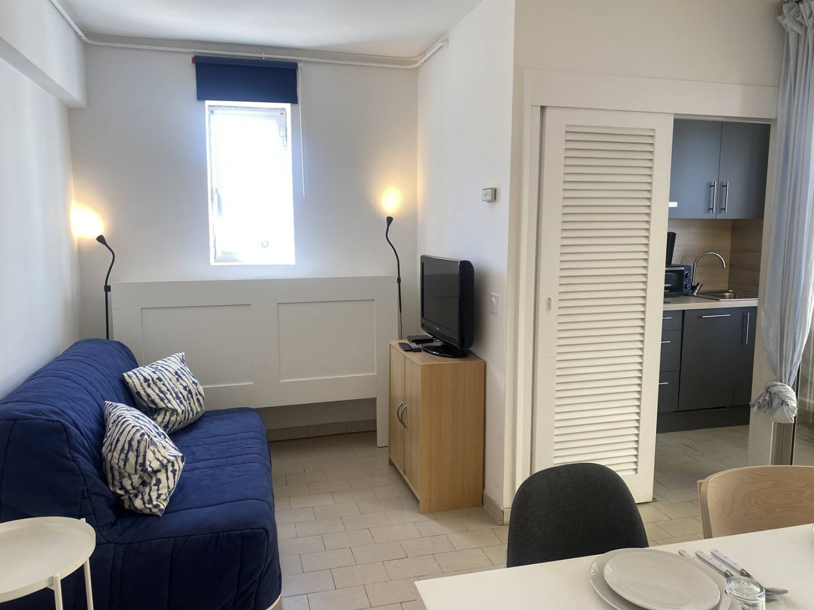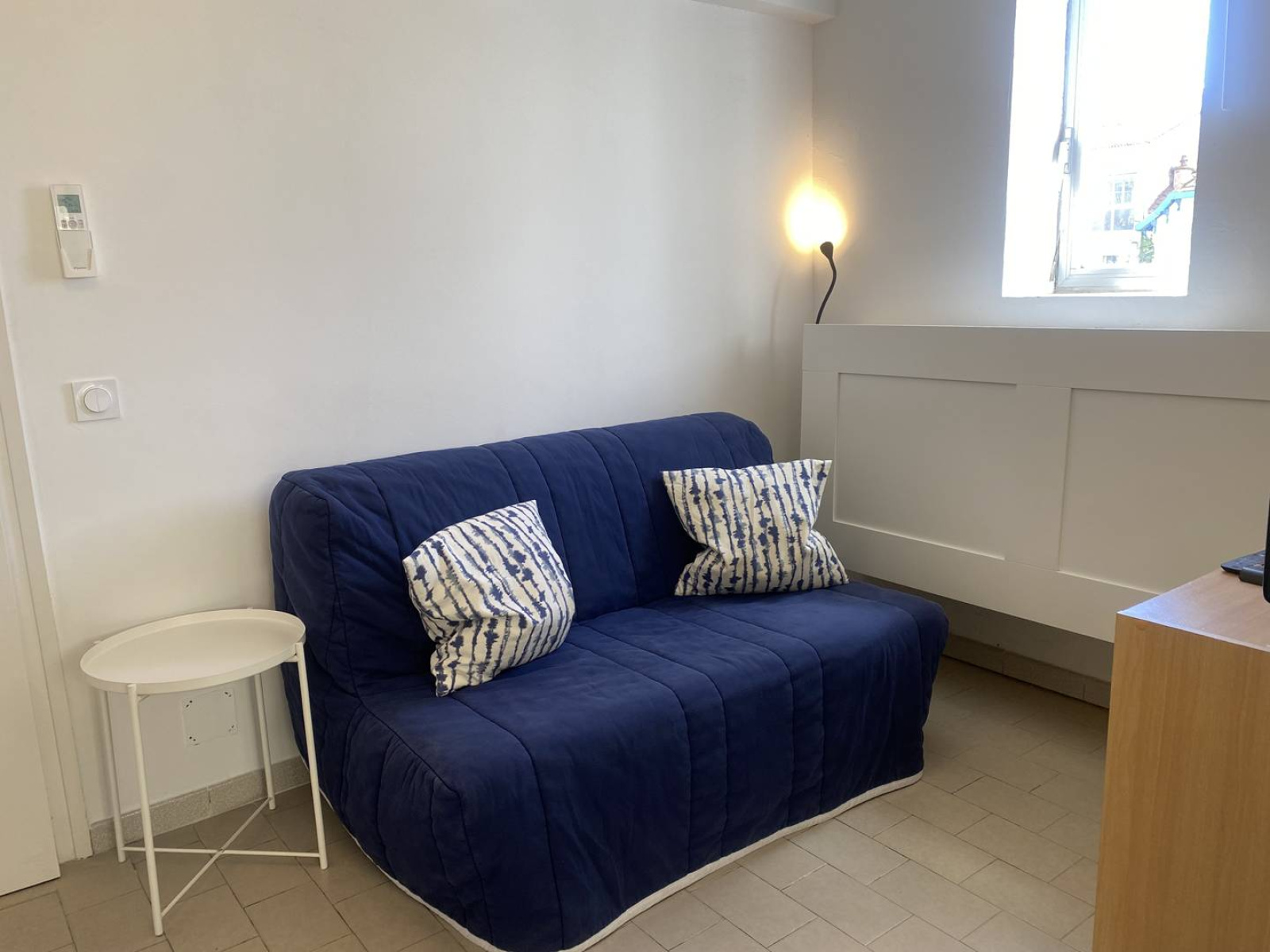 Appartement de type 2 pièces d’environ 37m². Au premier étage avec ascenseur. Aménagement agréable : cuisine équipée : frigo/top, plaque gaz 4 feux, four, micro-onde, nécessaire de vaisselle. Un séjour avec TV et canapé convertible (BZ - couchages 2 personnes), table et chaises. Une loggia avec table et chaises, offrant une vue latérale mer. Une chambre avec un lit en 140 et placard. Une salle de bain avec baignoire et lave-linge. WC séparés. Equipé pour 4 personnes. A deux pas de la plage et des commerces. Appartement climatisé et avec WIFI. Situé à proximité d'une rue animée en saison estivale. Linge de maison et draps non fournis. Le ménage n'est pas inclus.