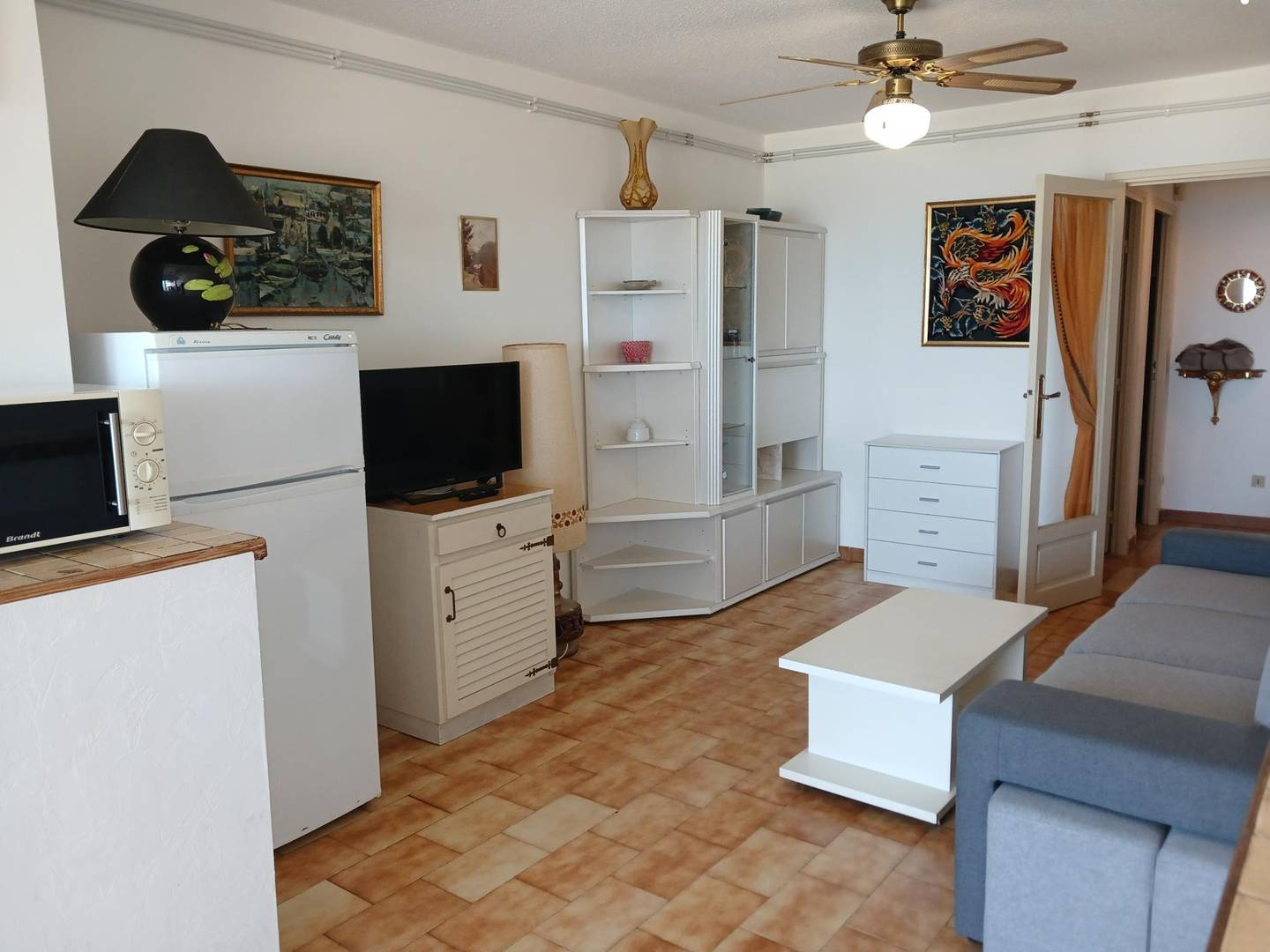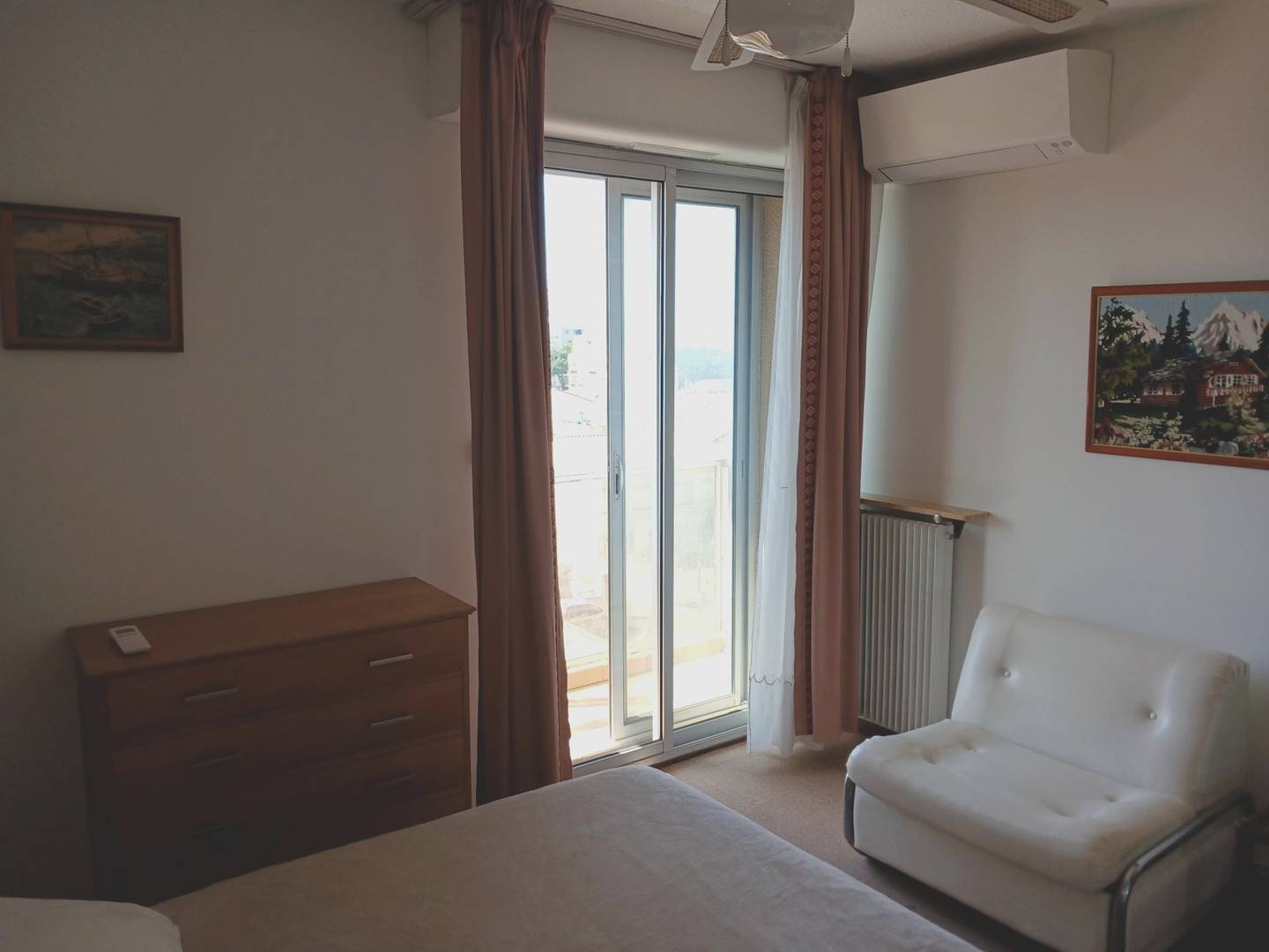 Grand appartement T3 traversant d'environ 60 m² climatisé en résidence sécurisée, au 4ème étage (avec ascenseur). Aménagement agréable : séjour avec TV et canapé. Coin cuisine équipé : frigo/congelateur, four, micro-ondes, cafetière, lave vaisselle et nécessaire de vaisselle. Une chambre avec lit double, placard et accès à un balcon. Une second chambre avec deux lits simples, commode et accès au balcon. Salle de bain avec baignoire et lave-linge. WC séparés. La terrasse orientée EST pourra recevoir vos repas en vous offrant une vue magnifique sur la mer. Parking privé et sécurisé. Climatisation. Équipé pour 4 personnes. Linge de maison et draps non fournis. Le ménage n'est pas inclus. ANIMAUX NON ADMIS