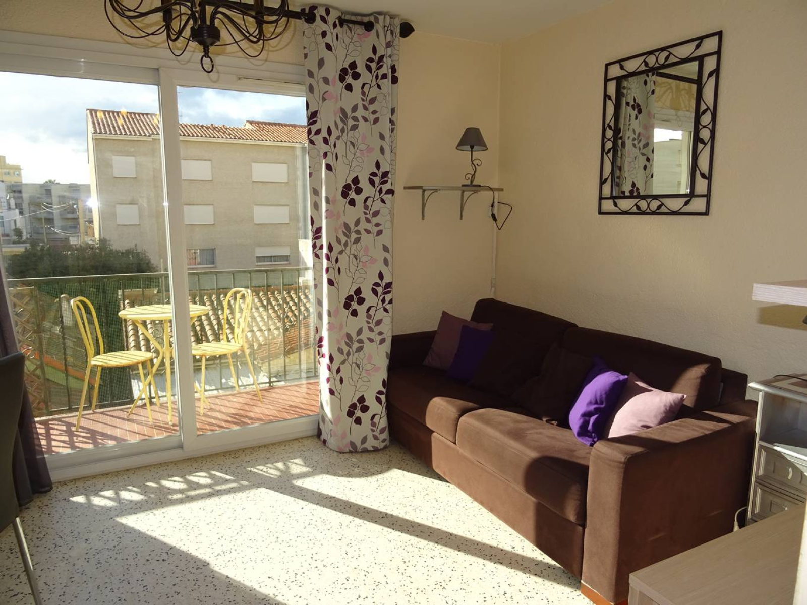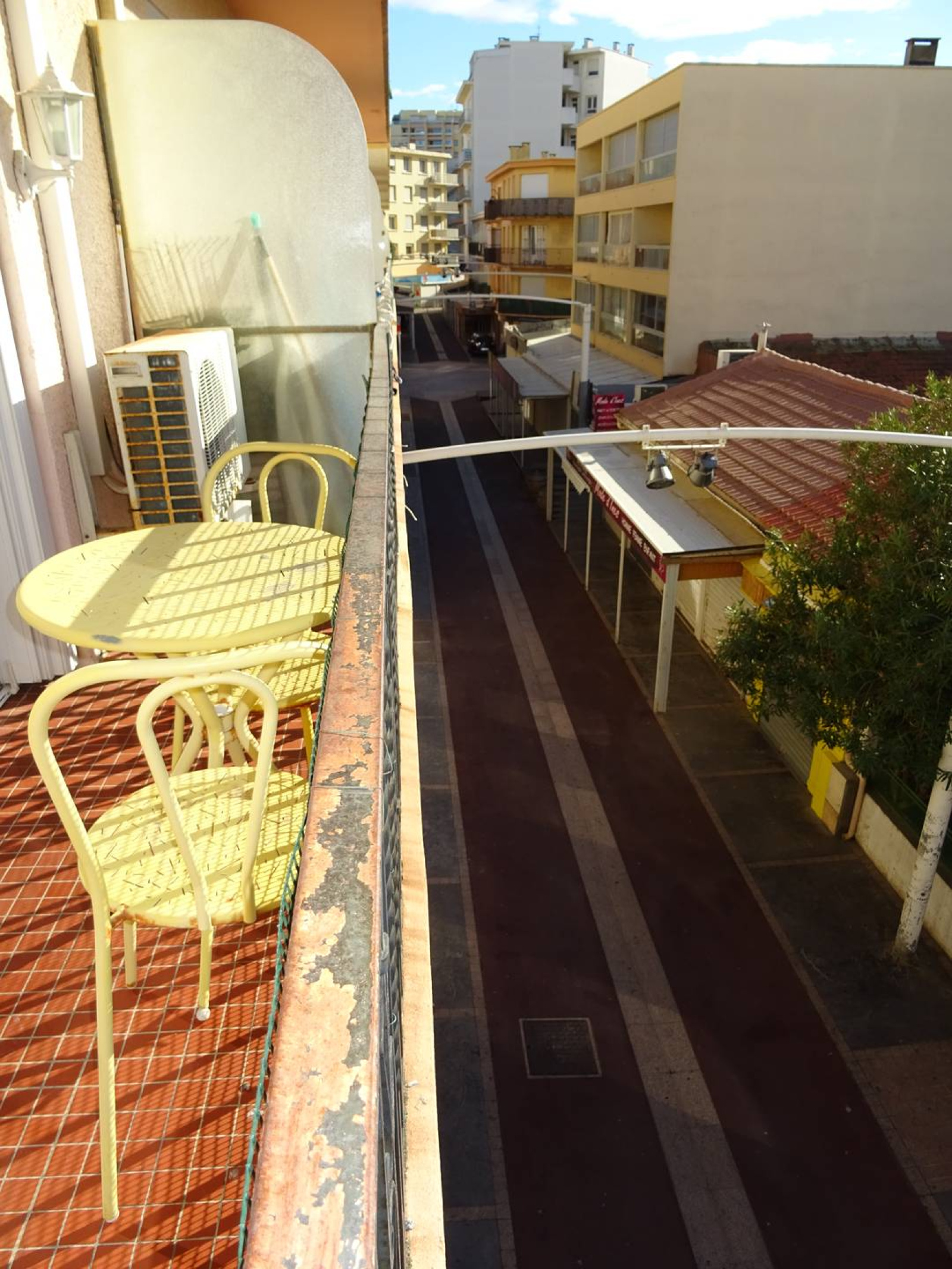 Studio d'environ 25m² climatisé, au 2ème étage d'une résidence sécurisée sans ascenseur, dont l'accès se fait par la rue piétonne. Il est composé d'une entrée donnant dans la cuisine équipée et séparée (frigo/congel, cuisinière avec plaque et four électrique, micro-onde et lave vaisselle), une salle d'eau avec wc et lave-linge. La pièce principale avec canapé convertible et TV, donne sur le balcon exposé Ouest avec vue sur la rue piétonne où se trouvent commerces et animations.