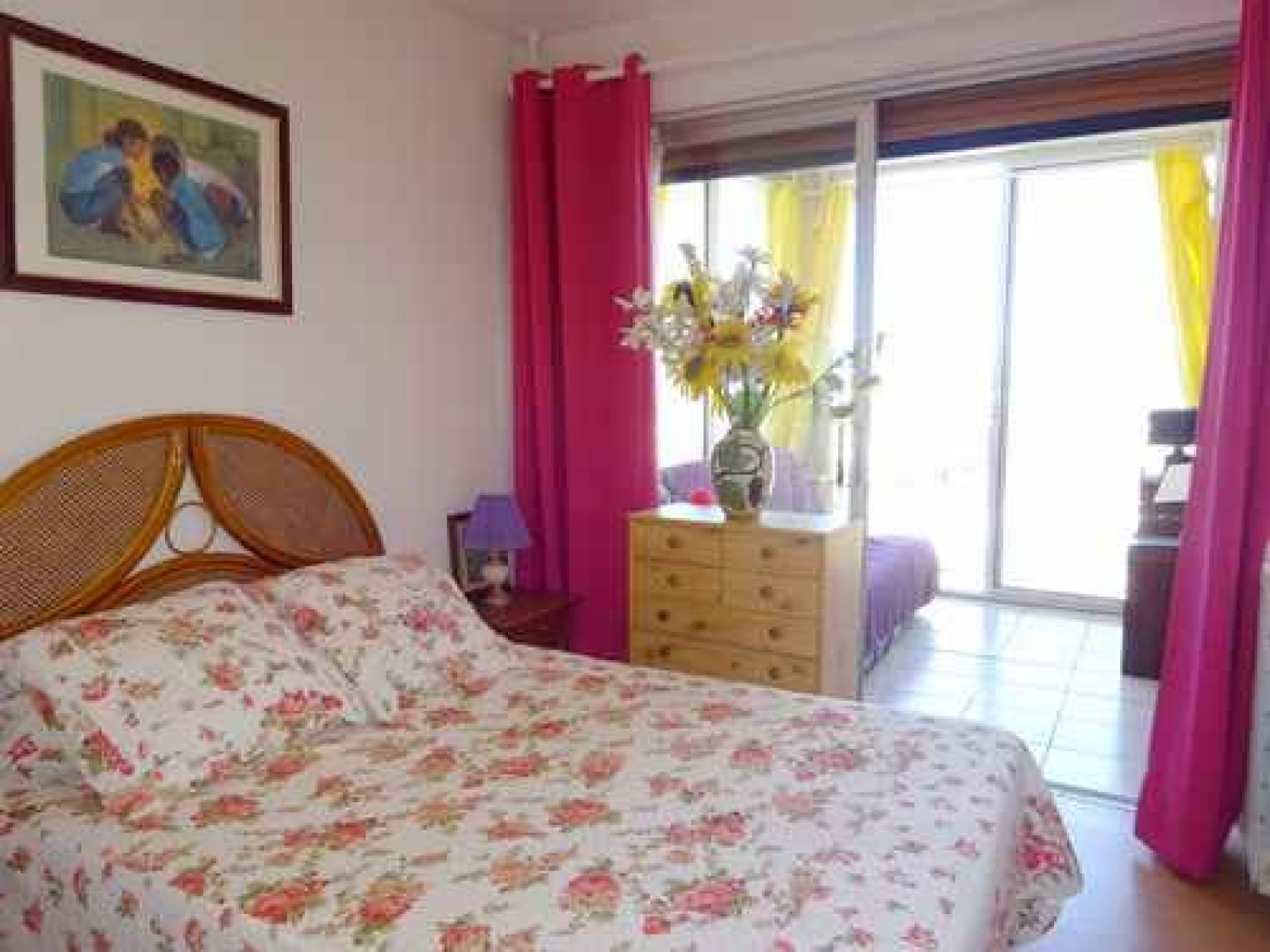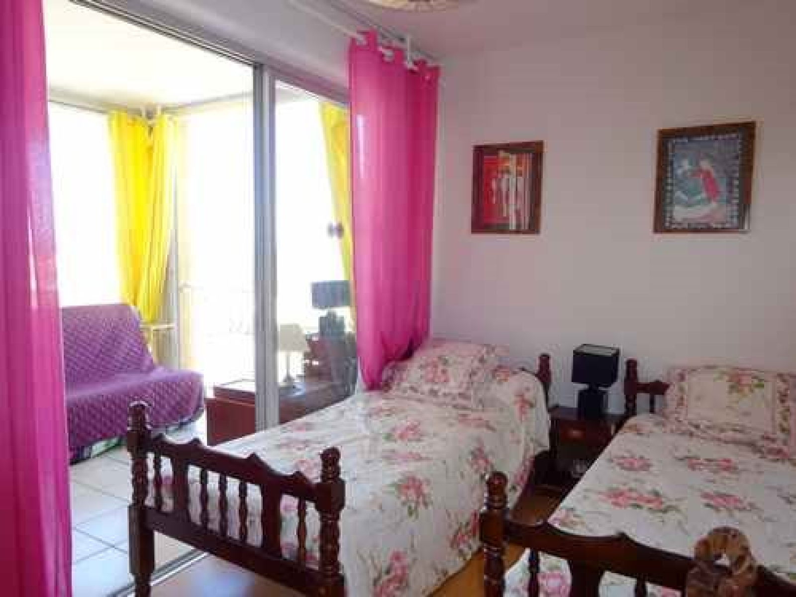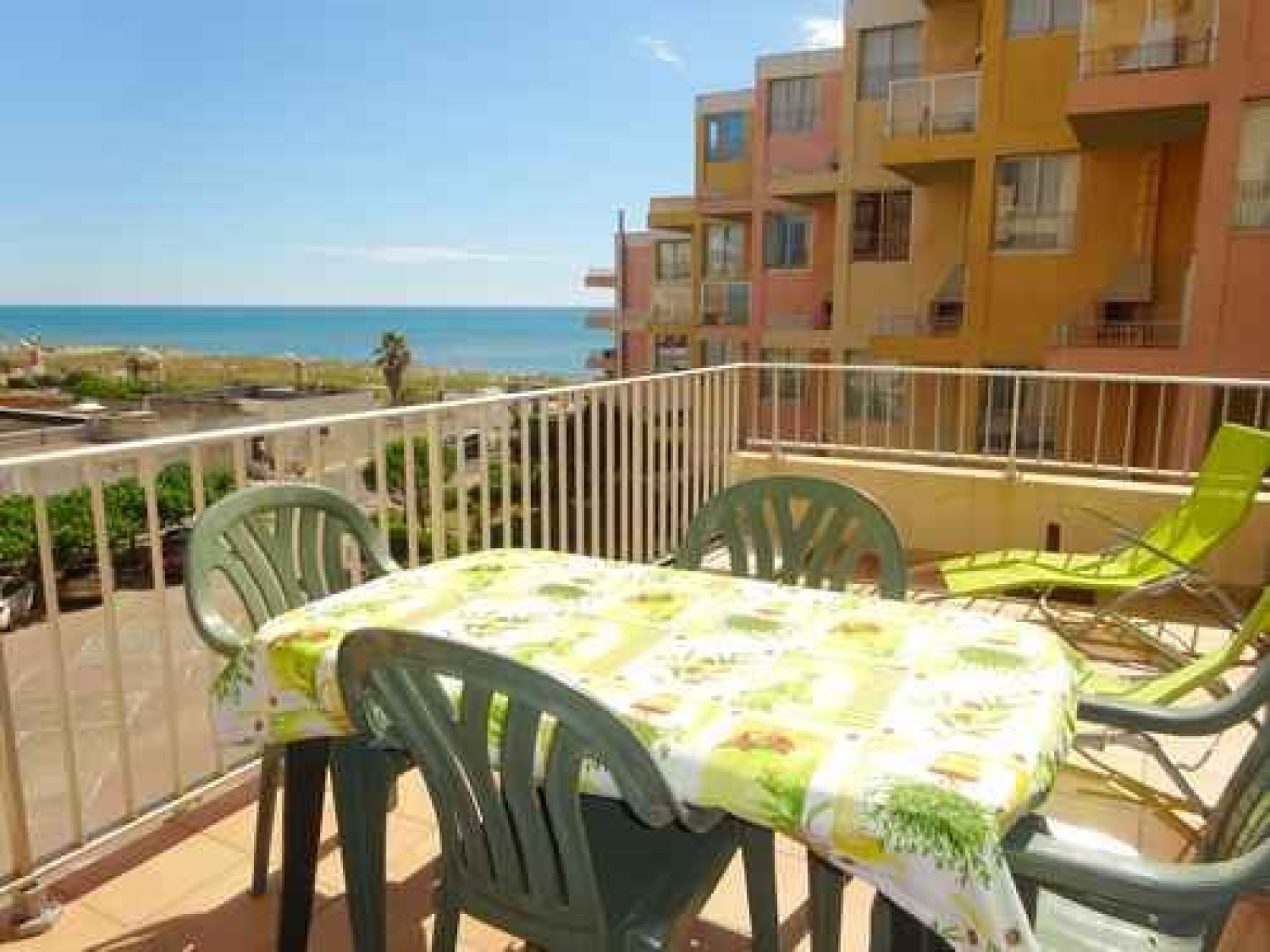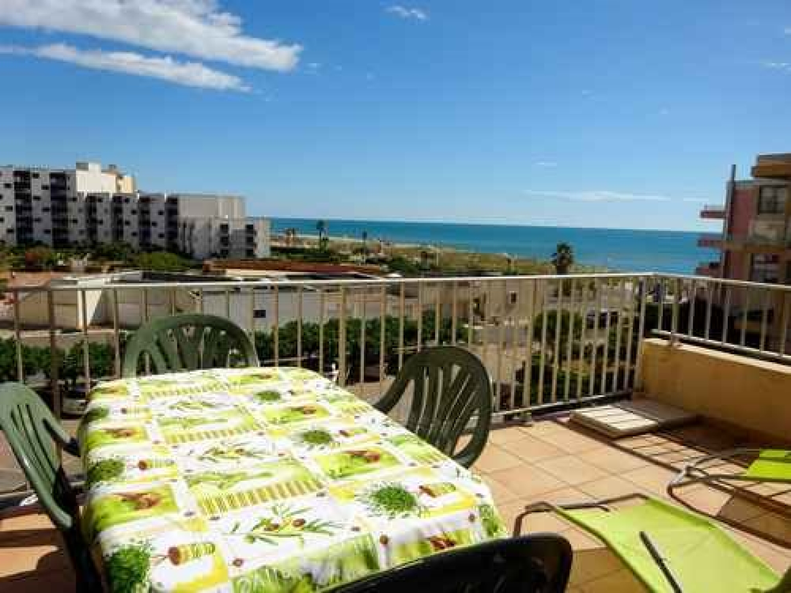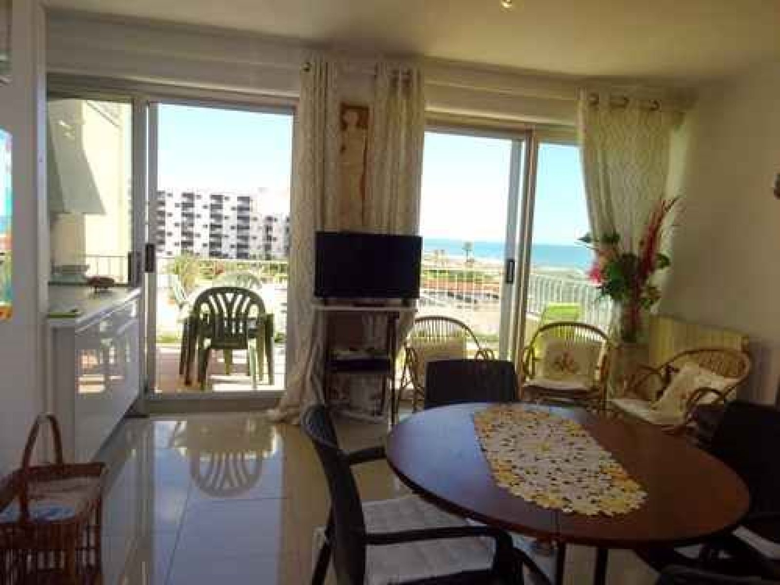 Au 3 E étage (ascenseur), Appartement 3 pièces en duplex traversant typique de la Sardane : Au 1er niveau, Espace salon séjour (canapé, coin TV et repas) ouvert sur une terrasse vue mer et équipée pour les repas (salon de jardin, parasol et vrai BARBECUE !). Cuisine ouverte équipée : 4 feux gaz, réfrigérateur congélateur, micro-onde, lave-vaisselle. A l’étage, une salle d’eau (douche) avec WC, une salle de bain (baignoire) avec Lave-linge. Une première chambre avec un lit en 140 (couchage 2 personnes) et une seconde avec 2 lits en 80. Les deux chambres donnent un accès sur une loggia équipée d’un clic clac.Equipé pour 6 personnes. Accès direct à la plage et parking privé.