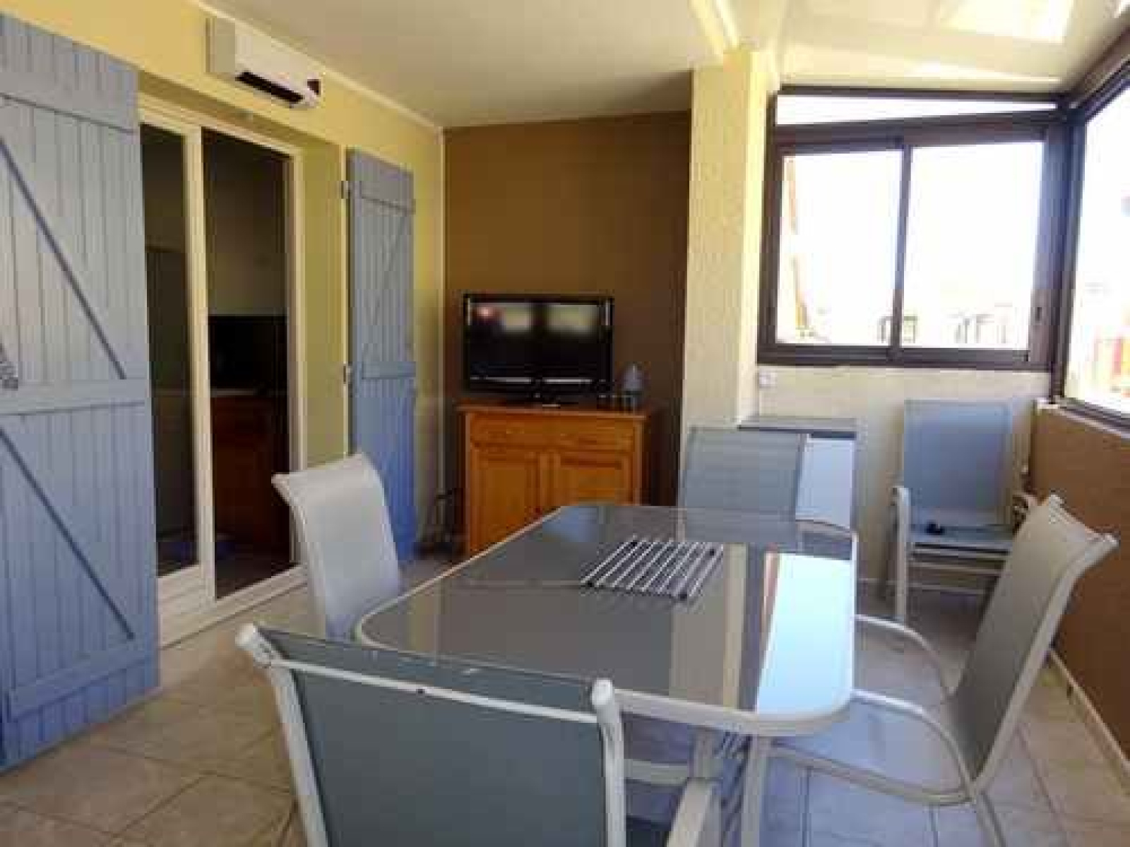 Une chambre avec un lit en 140 pour 2 couchages, accès à la loggia. Une grande loggia équipée pour coin repas avec climatisation mobile et TV. Place de parking privée. Appartement équipé pour 6 personnes. (à disposition chaise bébé, ventilateur plafonnier dans les pièces de vies).