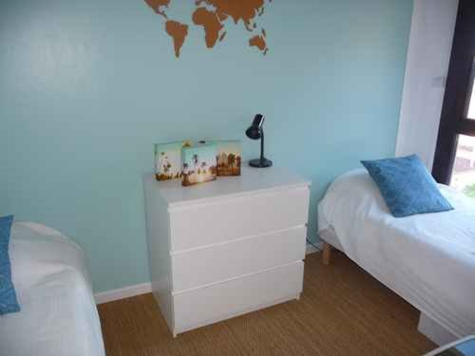 Au 3ième étage en exposition SUD, appartement de 3 pièces (environ 50m²), composé d’un salon avec TV, coin cuisine équipée : plaques de cuisson, four, frigo congélateur. Une chambre avec un lit en 140 pour 2 personnes. Une deuxième chambre avec 2 lits en 90 (couchage 2 personnes). Une salle d’eau entièrement rénovée avec douche et lave-linge et WC séparés. Magnifique terrasse vue mer équipée de 10m² (salon de jardin+ store banne). Logement équipé pour 4 personnes maximum. Accès piscine et parking privé.