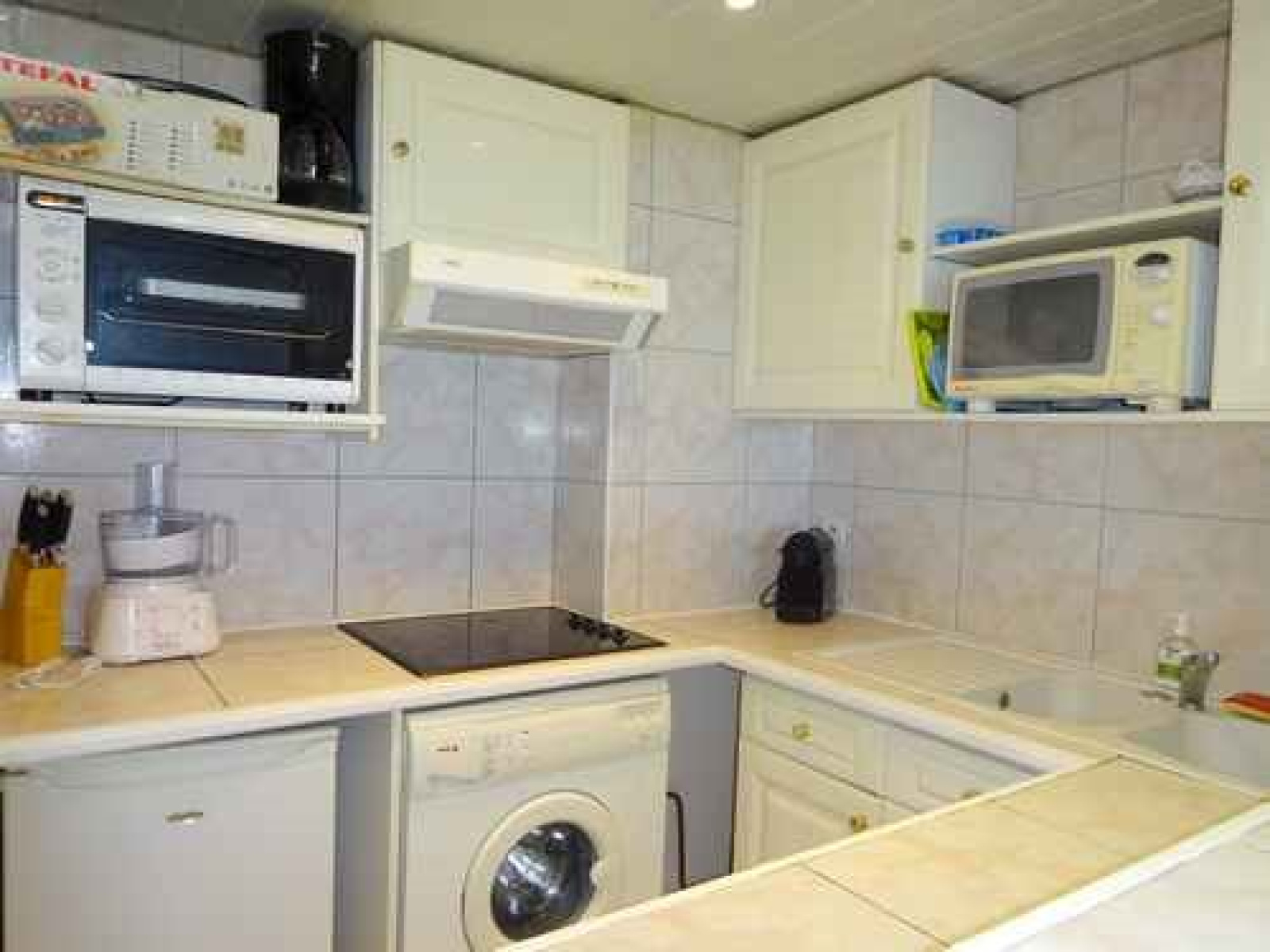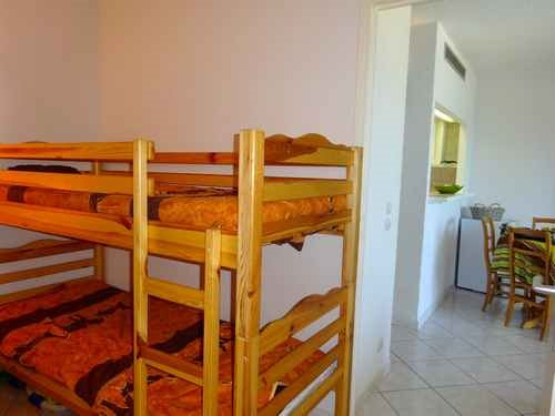 Au 4E étage (ascenseur), Appartement 2/3 pièces, ouvert sur terrasse comprenant un séjour avec un coin repas, TV et clic clac en 140 (couchage 2 personnes), Cuisine USA équipée (4 plaques, hotte aspirante, mini four, Micro onde, frigo congélateur, lave linge, lave vaisselle). Chambre semi ouverte, donnant également sur la terrasse, avec lit en 140 (couchages 2 personnes), placard et rangements. Coin cabine ouvert avec lits superposés en 90 (idéal couchages 2 enfants). Salle de bain avec WC. Terrasse équipée exposée Est (coin repas avec table et chaises, store banne) avec belle vue Mer et piscine. Equipé pour 4/6 personnes. Climatisation. Parking privée.L'ACCES PISCINE DEPEND DES AUTORISATIONS PREFECTORALES, NON GARANTIE SI SECHERESSE.