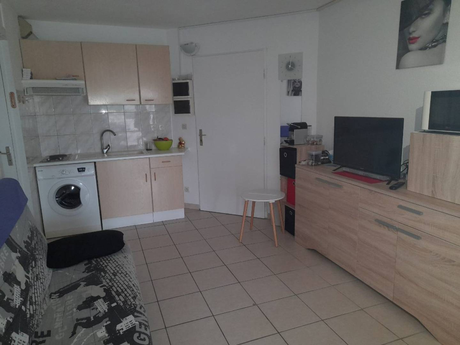 Séjour/ salle à manger climatisé, coin TV, coin cuisine équipé (plaque de cuisson, micro-ondes, four, Frigo congélateur, lave-linge. Salle d’eau et WC séparés.