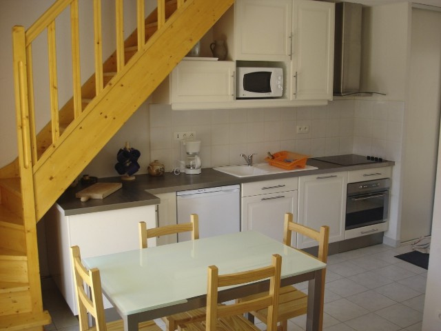Maison mitoyenne traversante 3 pièces 50 m2 sur 2 niveaux, confortable et agréable: Entrée, salle à manger / séjour avec 1 clic clac (couchages 2 personnes), TV (internet en wifi). Sortie sur la terrasse. Coin cuisine (plaques de cuisson, lave-vaisselle, four micro-ondes, congélateur et lave linge). 1 chambre avec 1 grand lit (couchages 2 personnes) et Salle d'eau avec WC. A l'étage supérieur: 1 chambre avec 2 lits (90 cm). Salle d'eau avec WC. Terrasse équipée avec bain de soleil, table et chaises, store banne électrique et barbecue. Maison équipée pour 6 personnes.