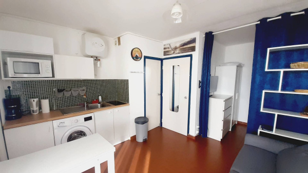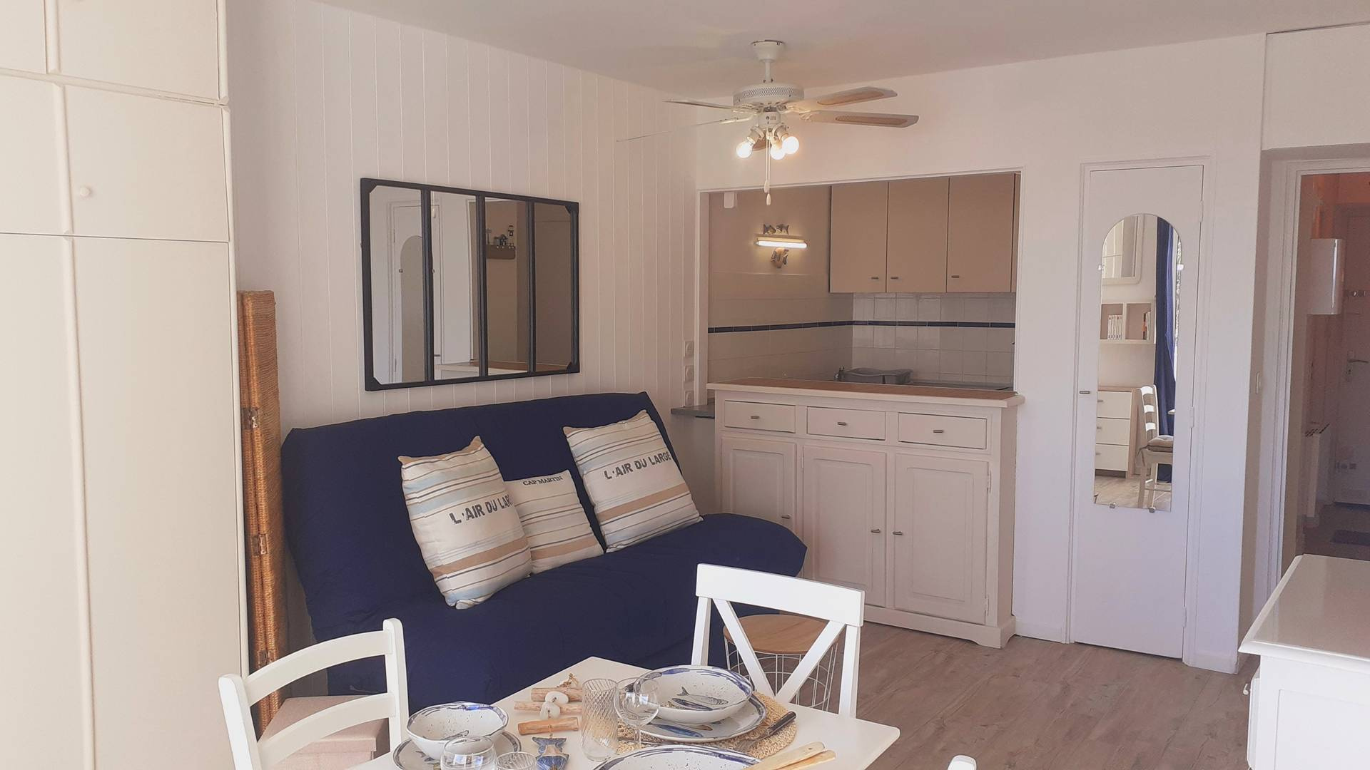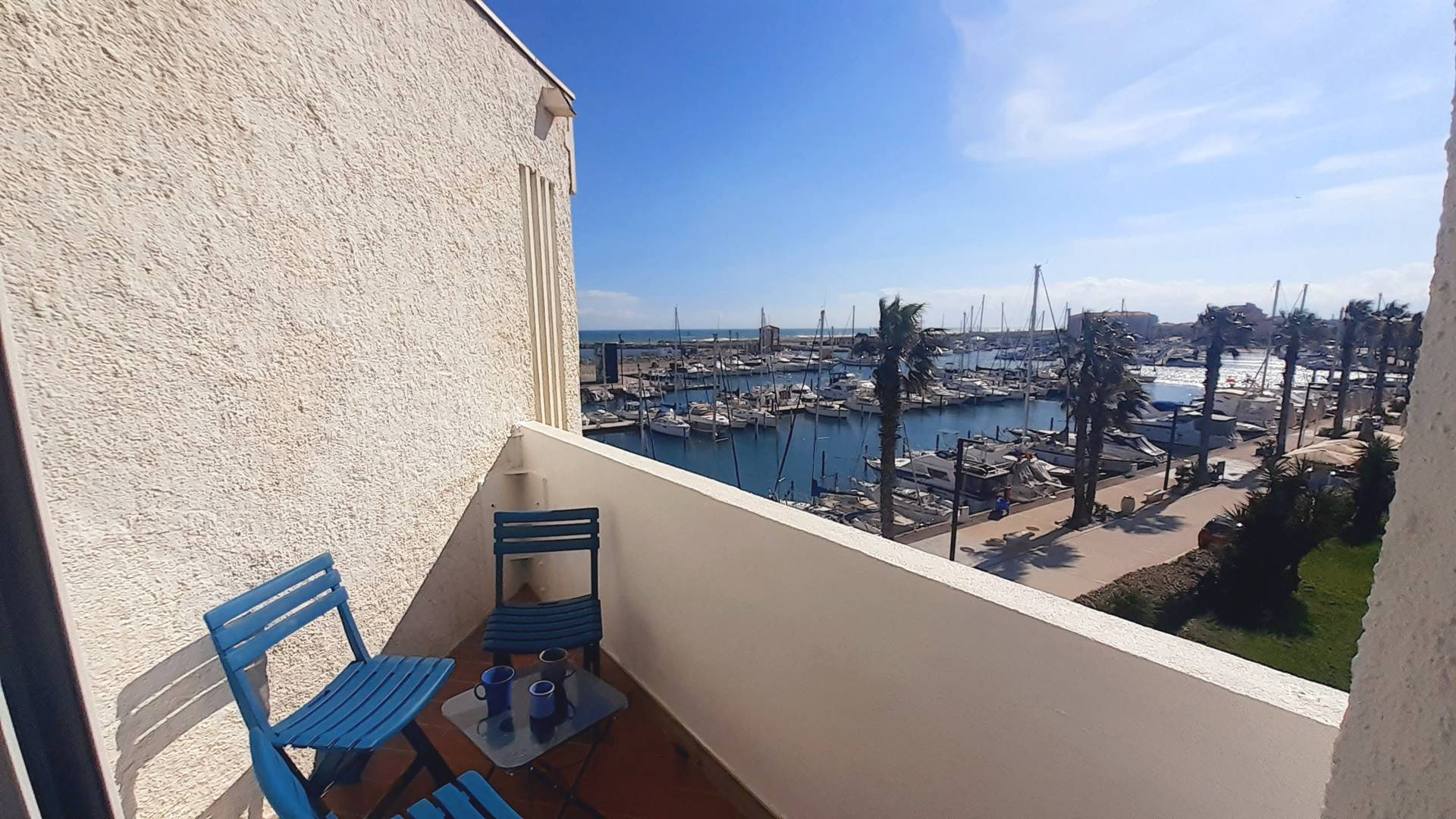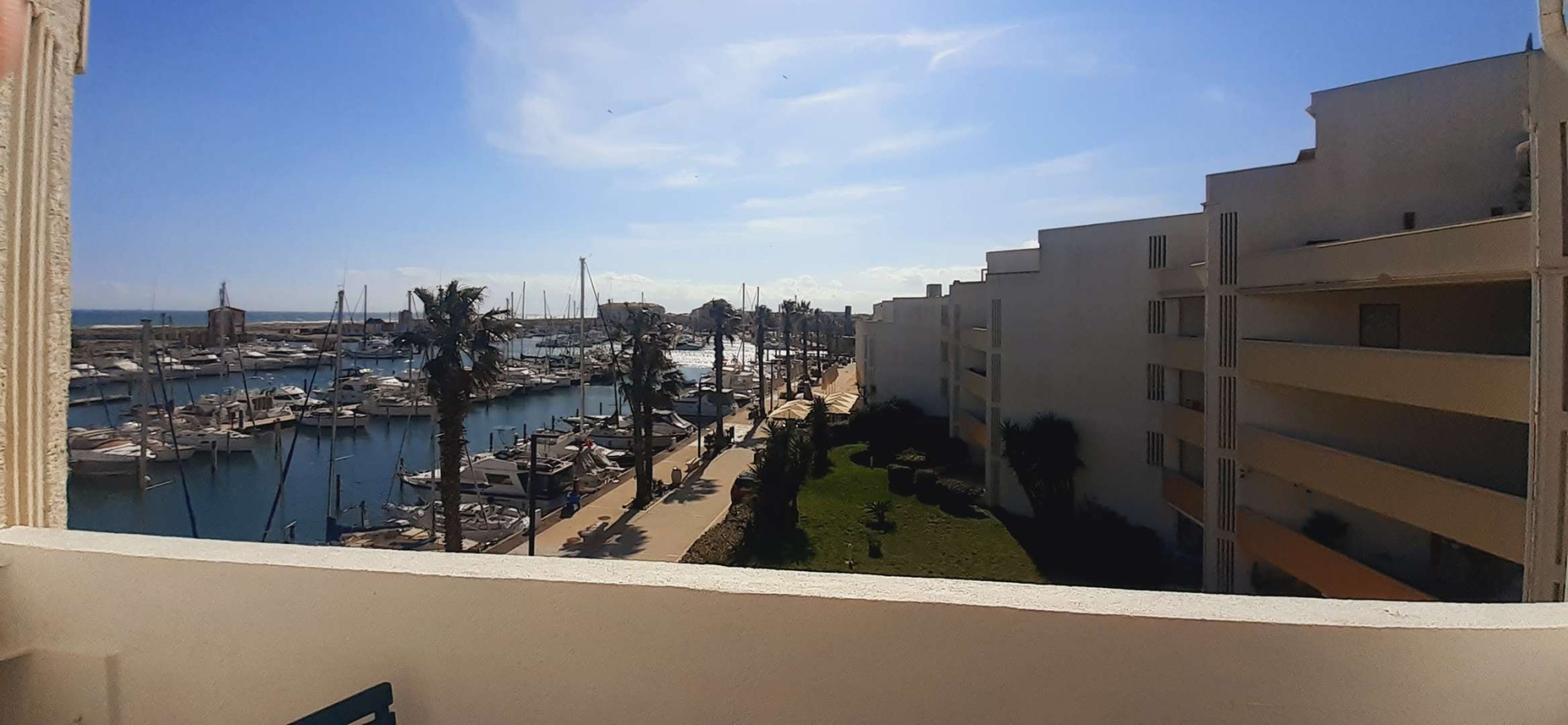 Magnifique Grand Studio (32m²) entièrement rénové face au Port de Plaisance et la Mer, confortable et agréable : Entrée donnant sur couloir desservant salle d’eau avec lave-linge, WC séparés, cuisine semi ouverte tout équipée (lave-vaisselle, plaque de cuisson 2 feux, micro-ondes, Frigo congélateur) et belle pièce de vie face à la mer et au Port. La pièce principale propose un canapé clic clac en 140 (couchage 2 personnes) et un lit pont (rabattable en 130) couchage 1 ou 2 personnes, TV, et un coin repas. Accès terrasse équipée pour vos repas. Les petit plus : Proche de la plage et des commerces. parking Public gratuit à proximité. Équipé pour 3/4 personnes. Logement NON FUMEURS / ANIMAUX NON ADMIS.