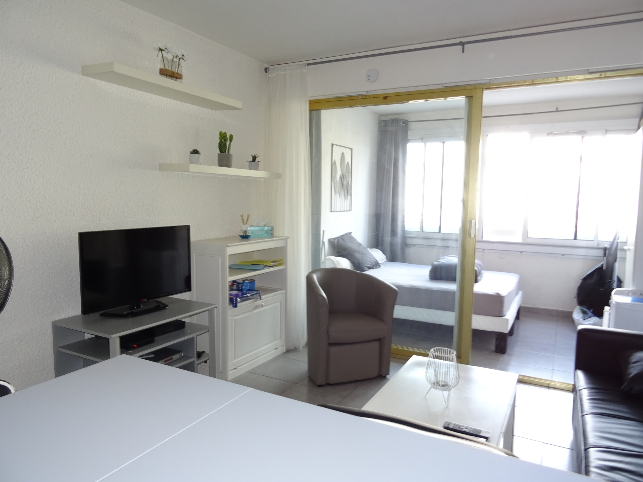 Appartement de type studio développant environ 31 m² de surface habitable (incluant la loggia), situé au 1er étage (avec ascenseur, mais demi pallier à descendre). Aménagement agréable : cuisine ouverte et équipée : micro-onde/grill, frigo/congélateur, plaques de cuisson, cafetière, lave-linge 4 kilos, nécessaire vaisselle. Espace séjour avec canapé, table, chaises et TV. Une loggia avec un lit double. Une salle d’eau avec douche, WC. Plein centre, toutes commodités à proximité immédiate. Climatisation d’appoint. Loyer : 350€ CC. Honoraires : 100€. Dépôt de garantie : 300€. Location jusqu'en Juin 2025.
