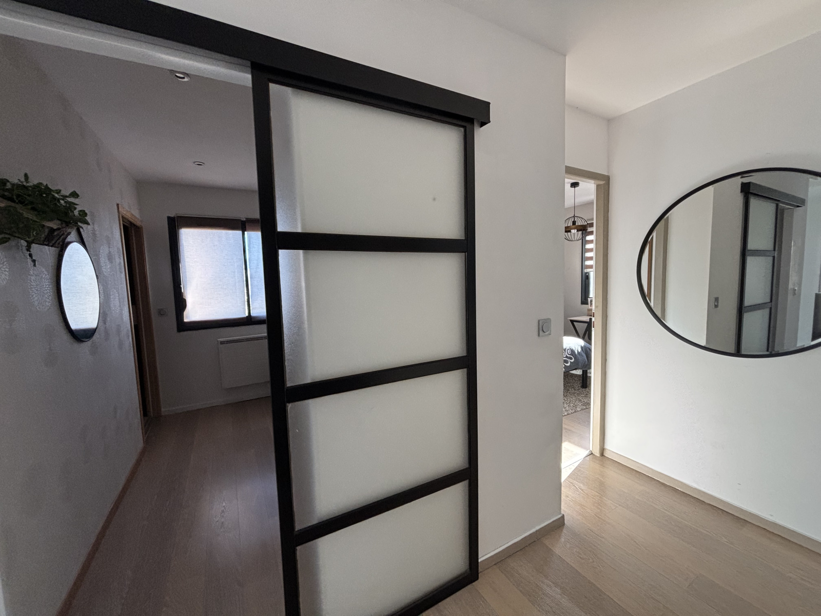 Vous découvrirez une pièce de vie lumineuse, grâce à ses grandes baies vitrées exposées sud-est, ouvrant sur une agréable terrasse.