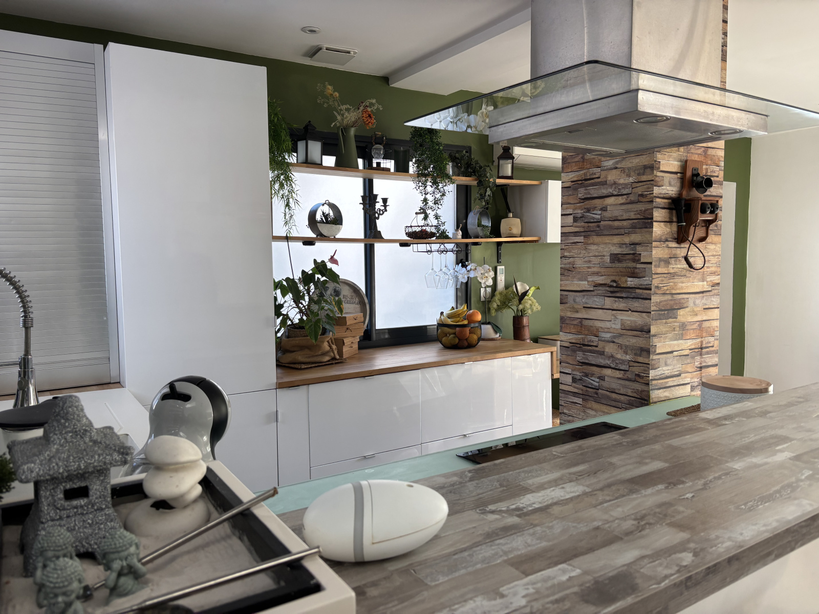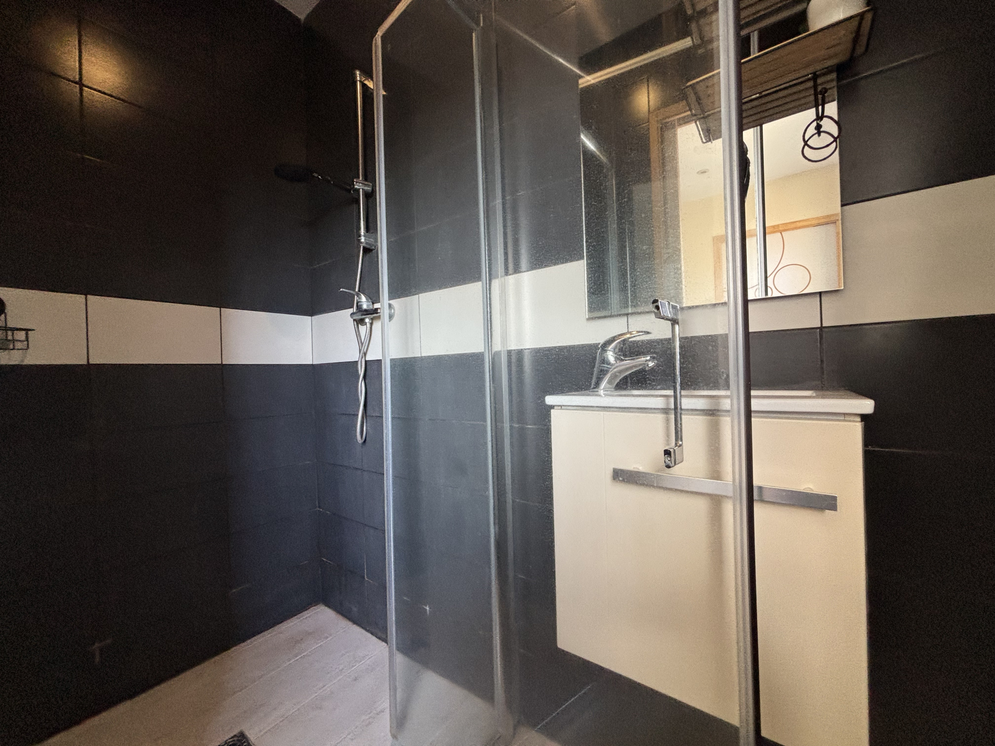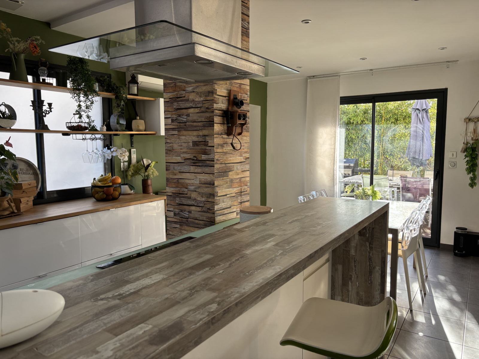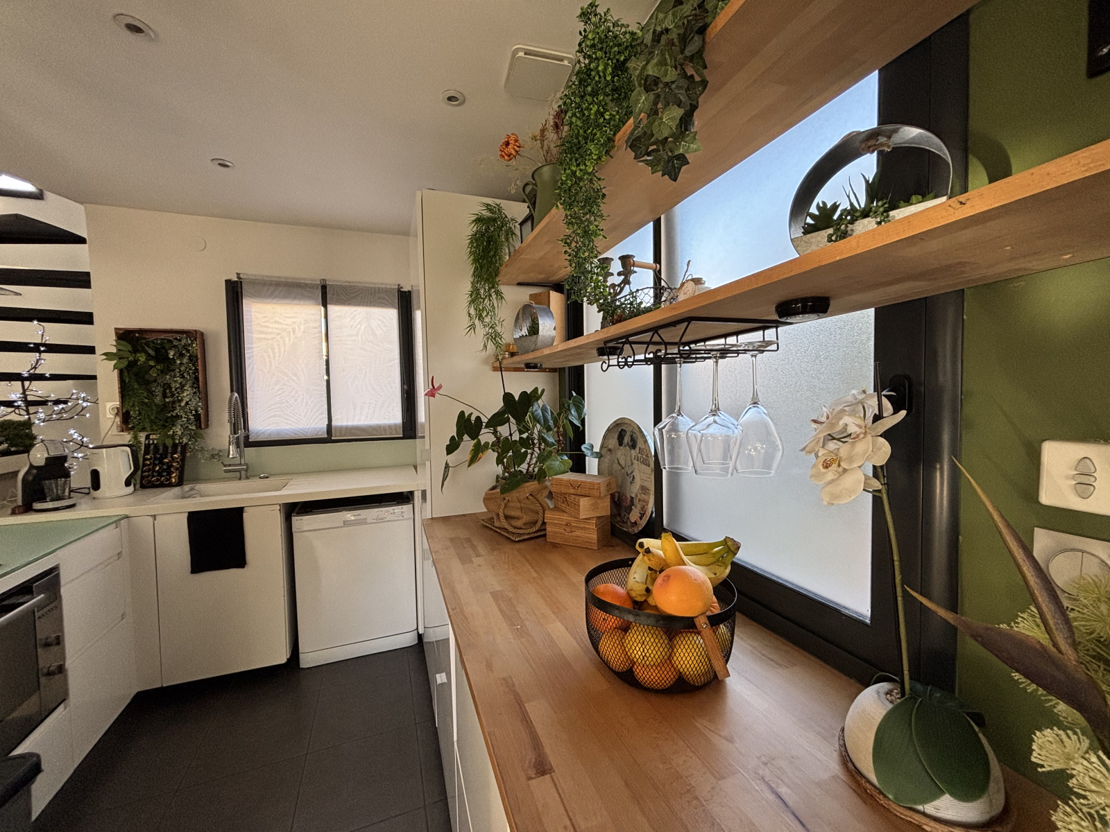 Le rez-de-chaussée se compose également d’une chambre, d’un cabinet de toilette, ainsi que d’une cuisine ouverte, équipée et aménagée.