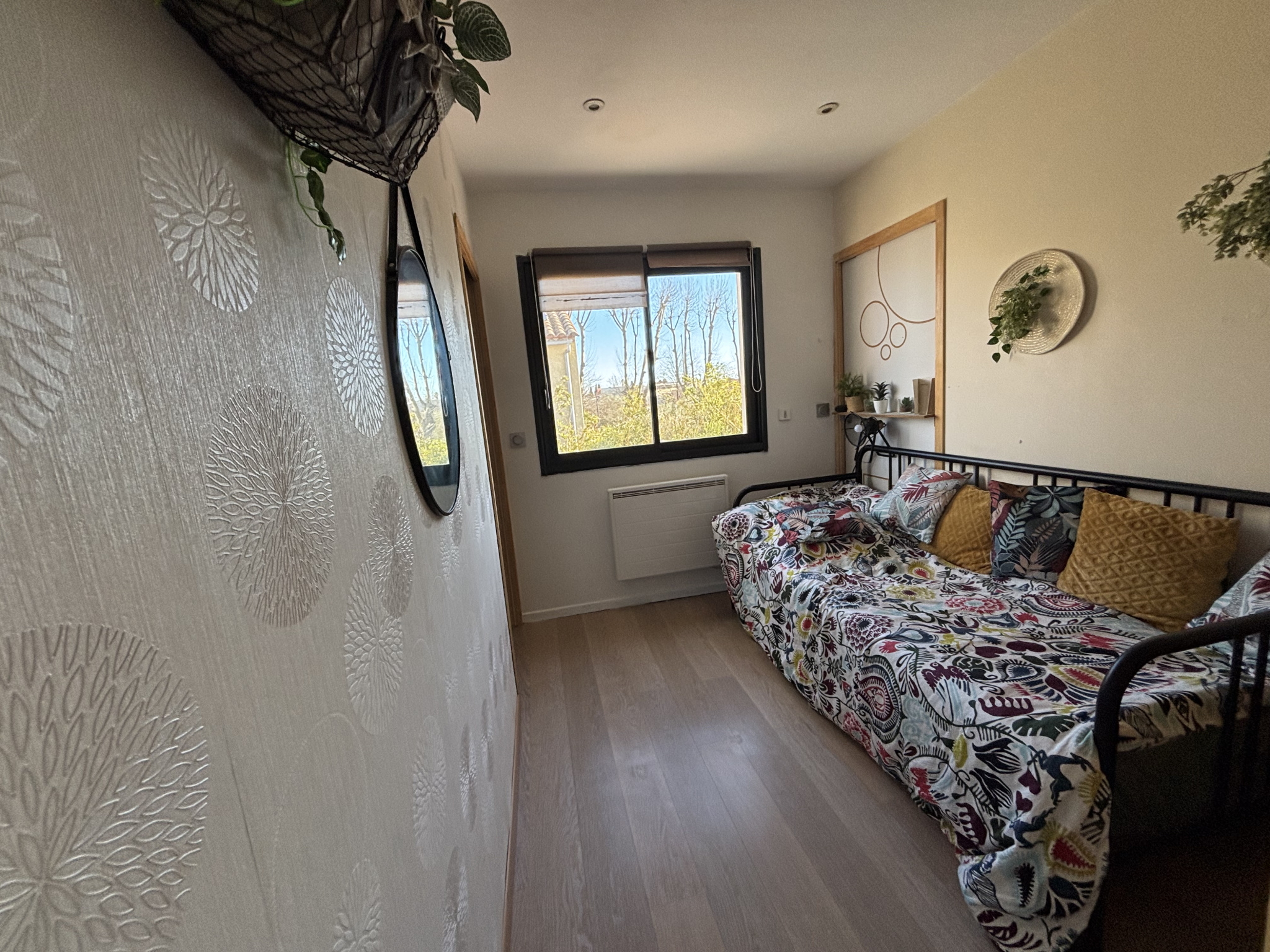 La maison, construite en 2016, repose sur un vide sanitaire de 1,20 m, dispose d’une charpente bois, d’un accès aux combles, d’un portail électrique, et permet le stationnement de plusieurs véhicules sur la parcelle.