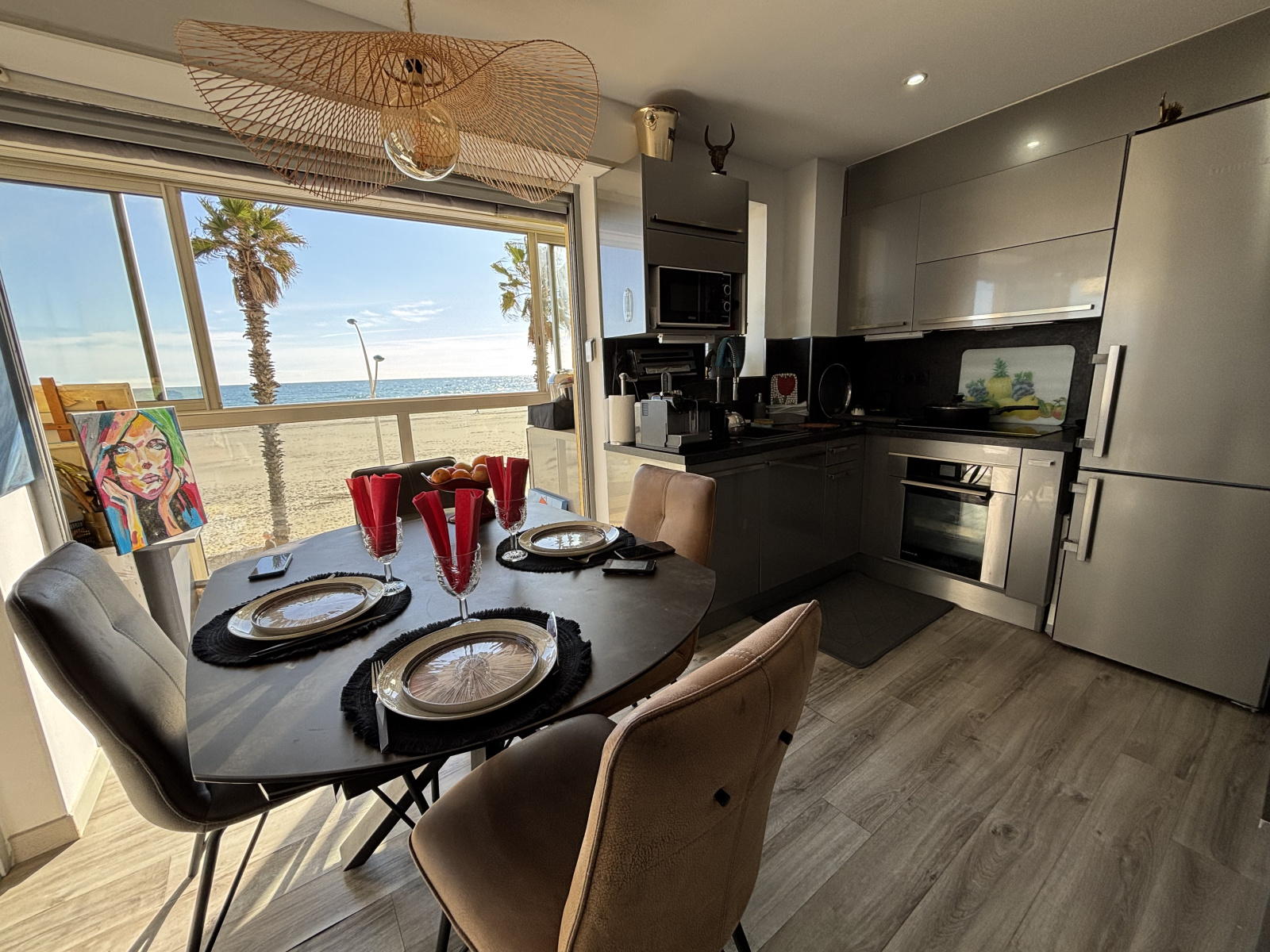 Coup de coeur assuré pour ce magnifique T2 entièrement rénové avec des prestations haut de gamme dans une résidence sécurisée avec ascenseur. Situé en première ligne il offre une vue imprenable sur la mer et un cadre de vie idyllique. Agencement idéal: entrée avec rangement, belle pièce de vie baignée de lumière avec accès direct à une loggia de 10m² pour profiter des levers de soleil et repas en plein air. Cuisine équipée et aménagée ouverte sur le séjour, chambre avec grand placard intégré, salle d'eau moderne et WC indépendant. Idéal pour y vivre à l'année. Produit rare sur le marché! Contactez-moi dès maintenant pour organiser une visite: Bianca RAIA 06 50 29 95 93